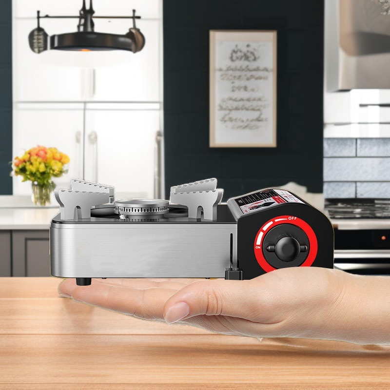가정용 및 휴대용 미니 카세트 가스레인지, 소형 사이즈로 공간 절약, 간편한 이동과 사용, 안전장치 내장, 캠핑 및 야외활동에 적합, 효율적인 열전달.